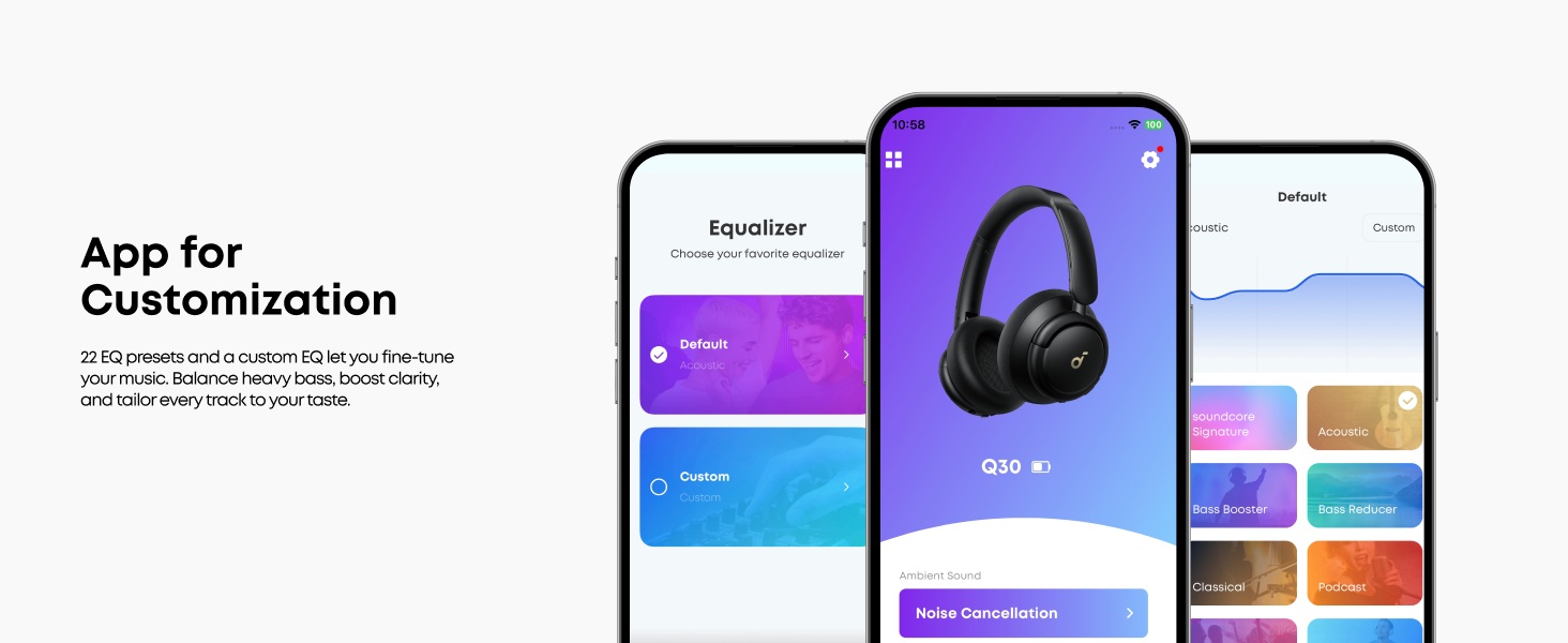 App Customization – Use the Soundcore App to choose from 22 EQ presets or create your own.