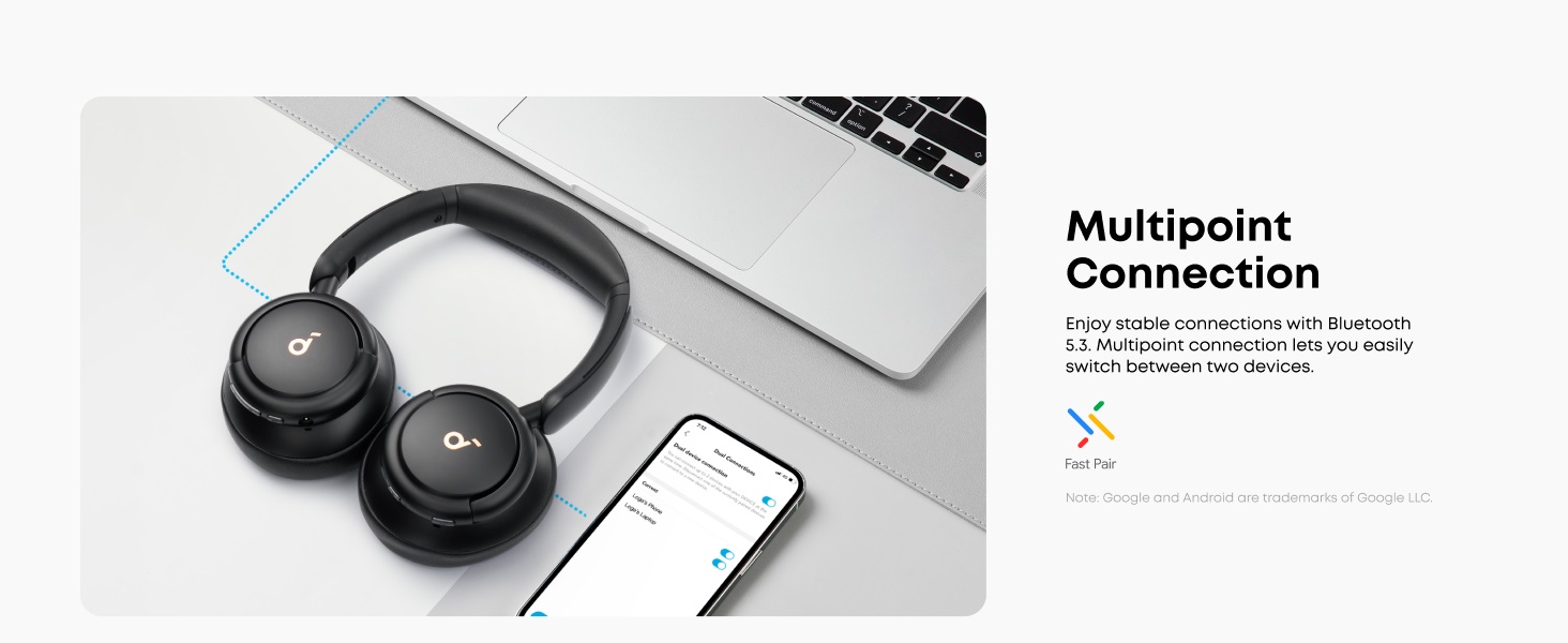Beyond silence, the Q30 delivers studio-quality sound. Equipped with 40mm silk diaphragm drivers, it produces thumping bass and crisp treble up to 40kHz, earning it the prestigious Hi-Res Audio certification. Comfort is prioritized with ultra-soft protein leather earcups containing memory foam, making them perfect for long listening sessions. With Multi-Point Connection, you can seamlessly switch between a Zoom call on your laptop and a playlist on your phone, ensuring you never miss a beat or a meeting.