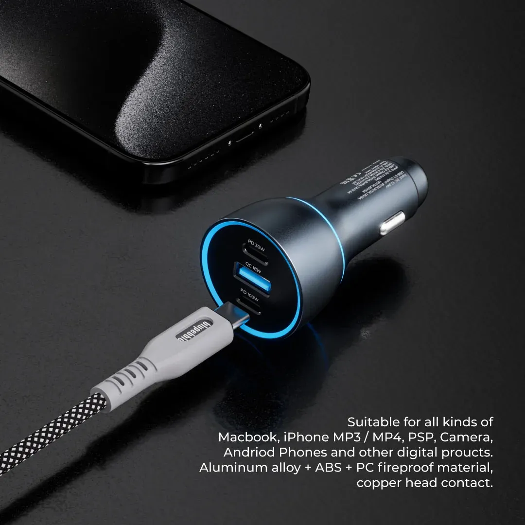 - Fast charging 130W Aluminum Car Charger 2 USB-C Ports 100W | 30W & QC18W