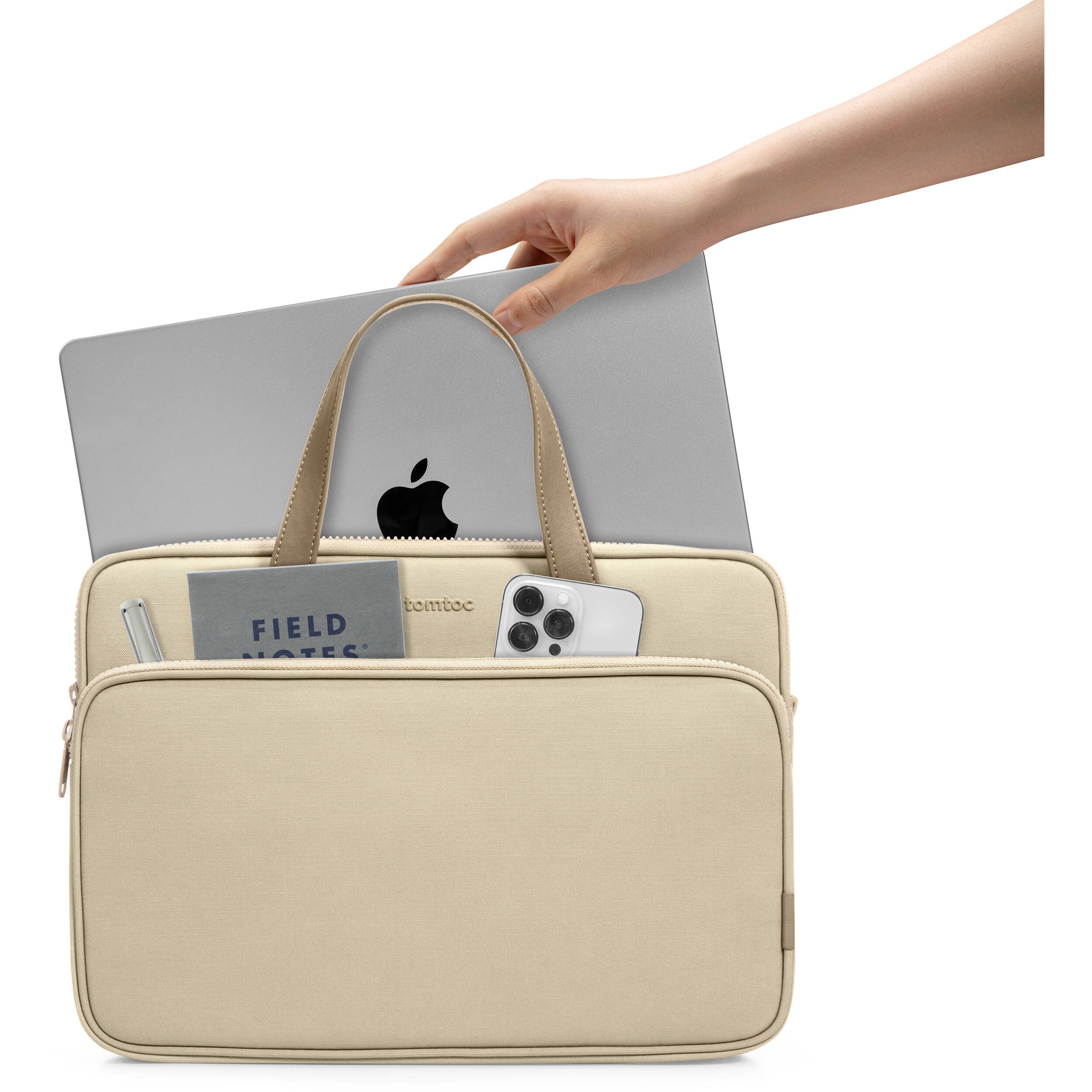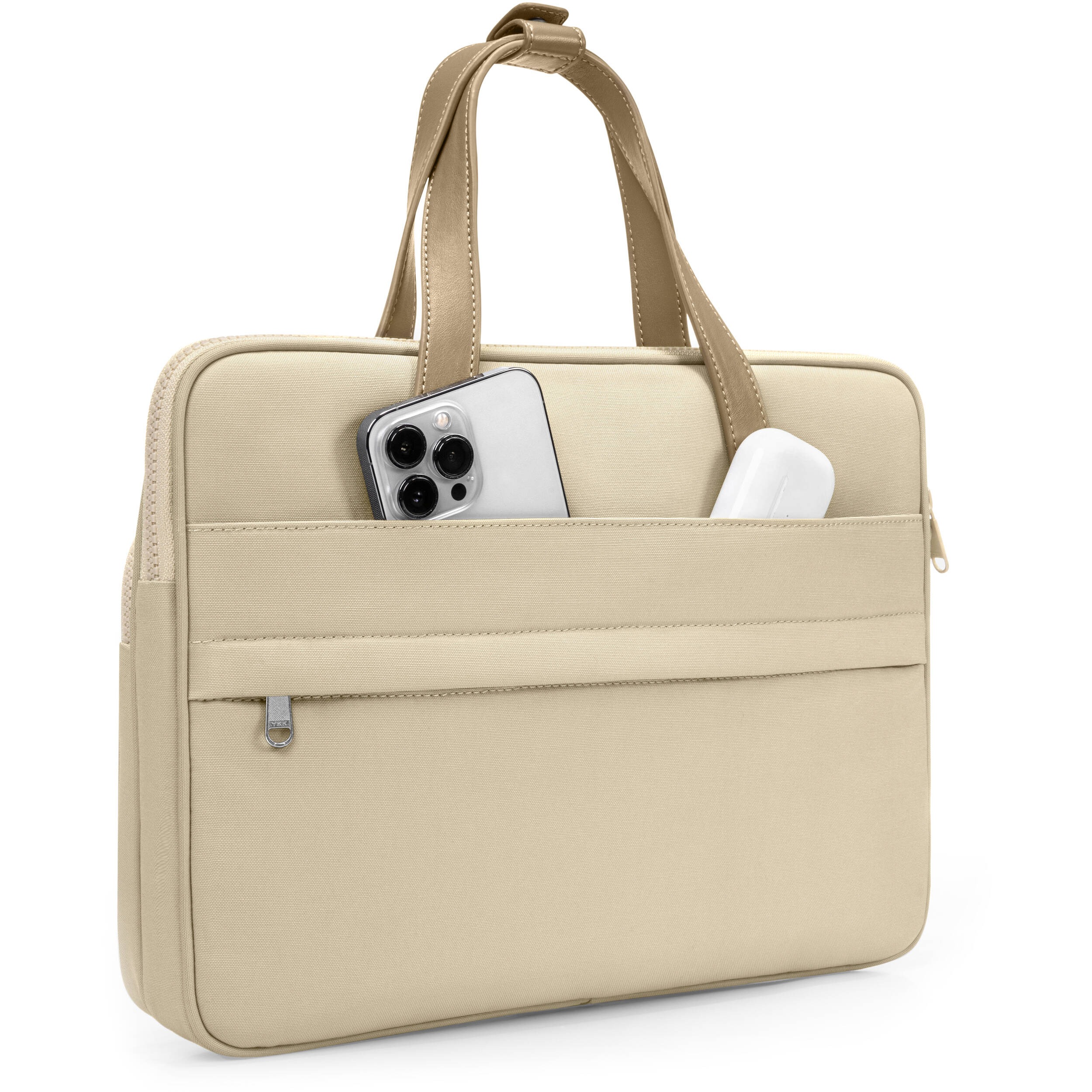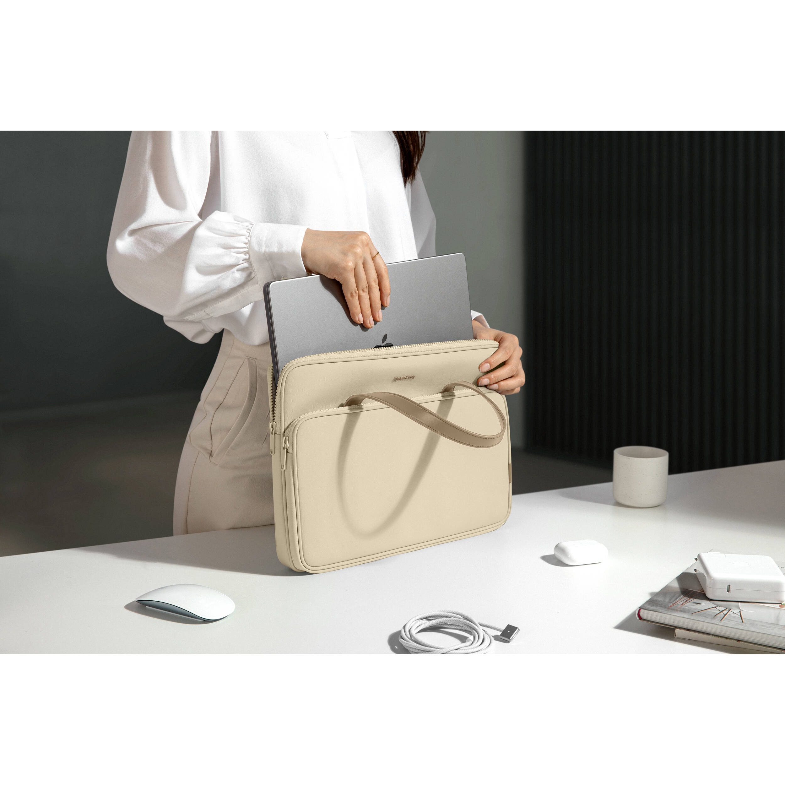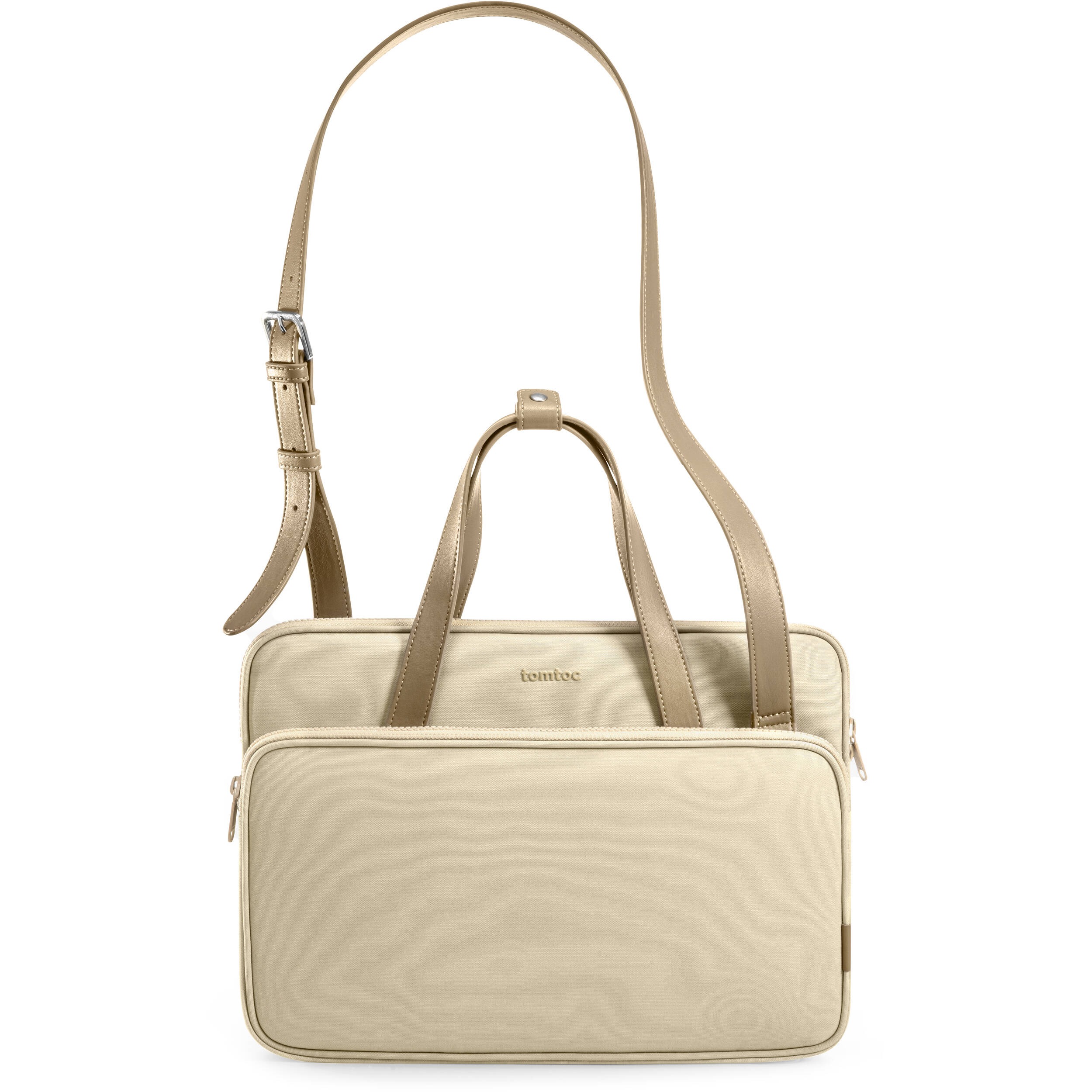 Keep your 13.5″ laptop protected and travel in style with the Versatile-A12 Laptop Shoulder Bag from tomtoc. The main compartment accommodates select Microsoft Windows or Apple MacBook devices while additional pockets support accessories. This bag has a slender design that blends modern style with high-quality materials. Equipped with a stylish water-repellent surface, this bag keeps your device dry in inclement conditions. Comfortably carry your bag with the shoulder strap or the dual PU leather top handles. The bag has a trolley sleeve so you can attach it to the handle of your rolling luggage.