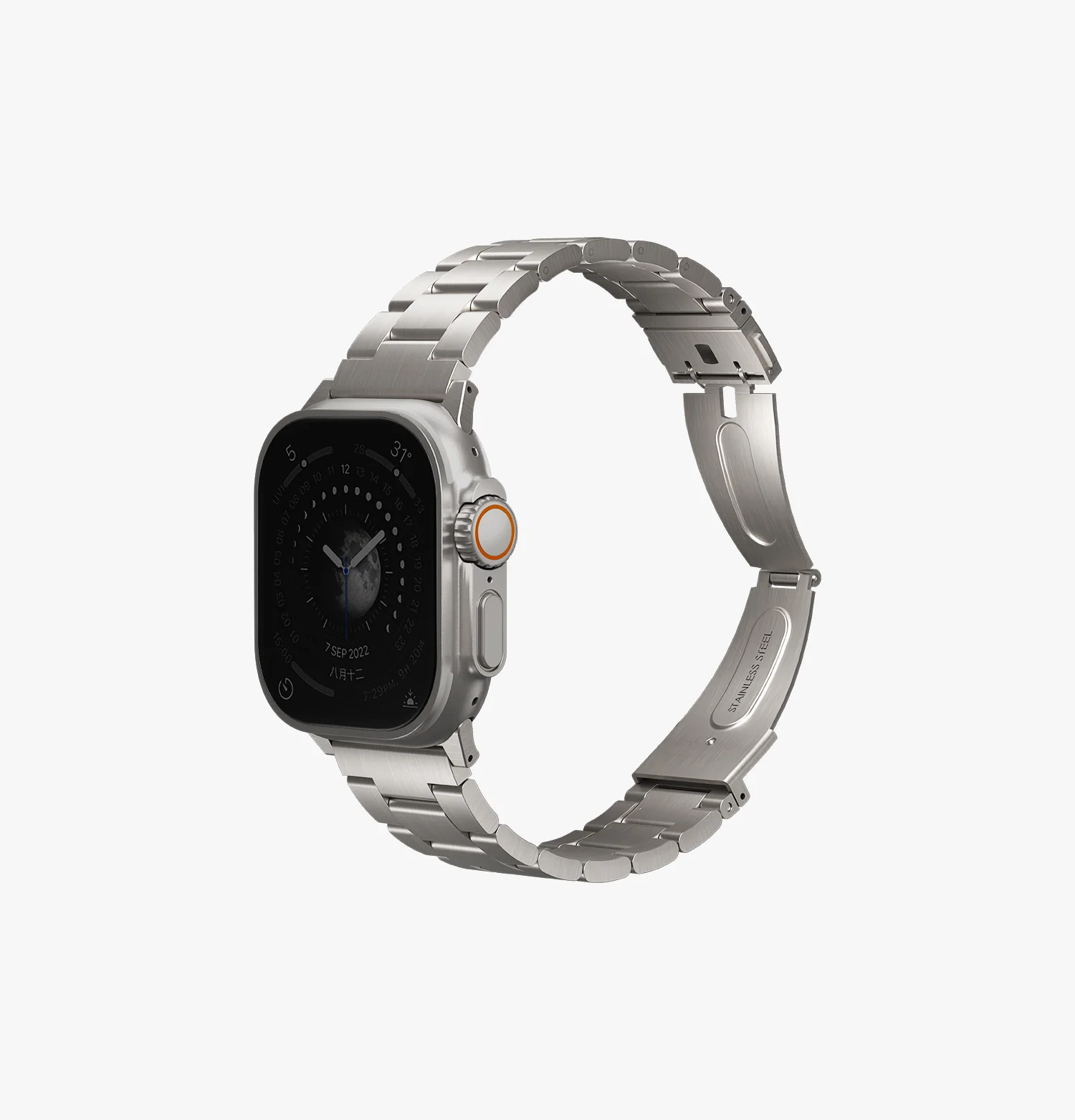 Uniq Osta Apple Watch Ultra Steel Link Strap with self-adjustable links fits up to Series 1-11, Ultra 2/3 & SE 2/3 49/45/44/46mm – Titanium Silver