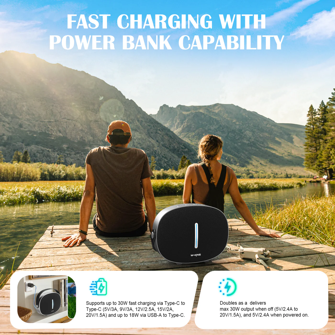 W-King T8 30W Outdoor Traveler Portable Wireless Bluetooth Speaker with Sub Woofer Bass HD Sound – Black